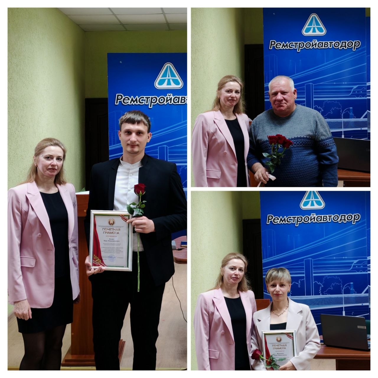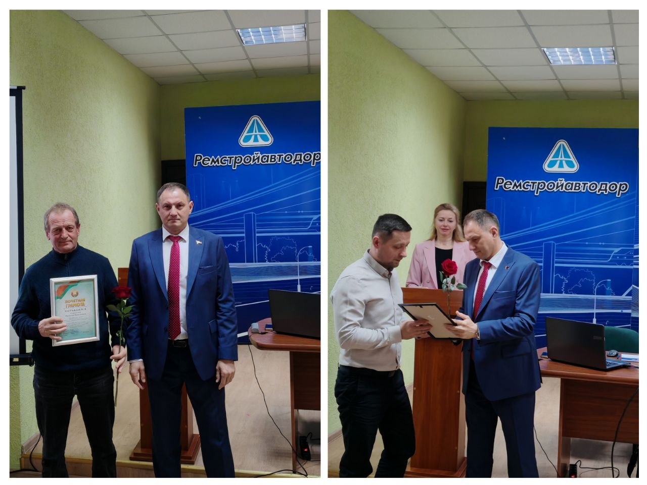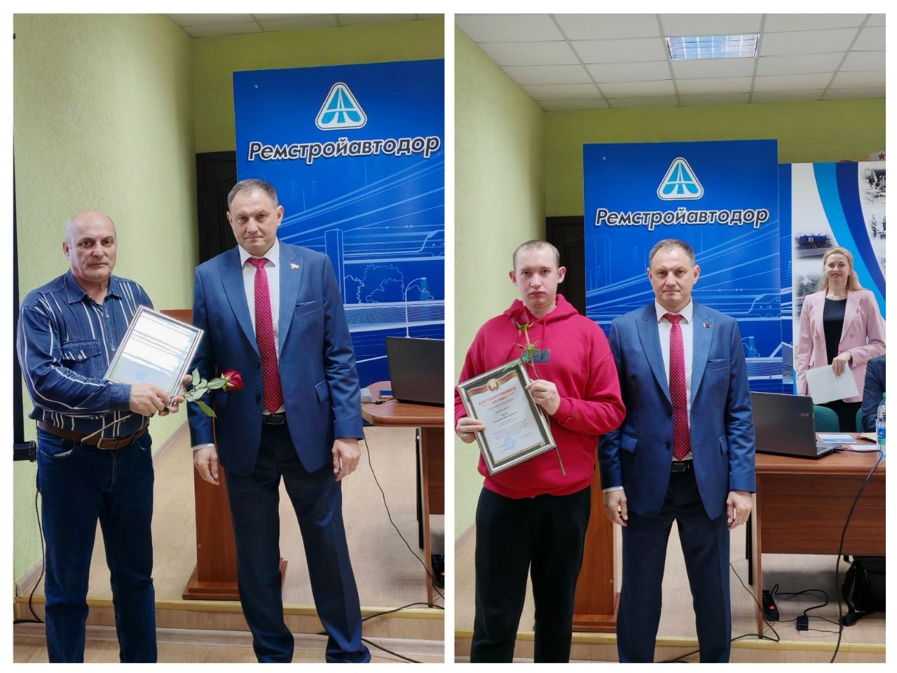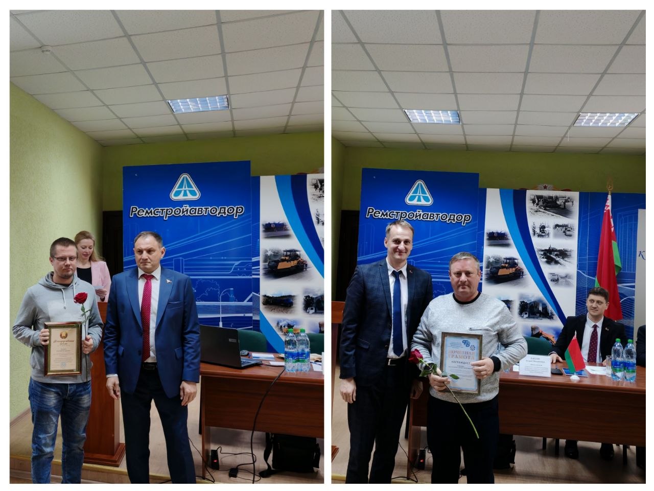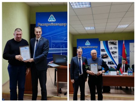 Вместе с почетным гостем, руководителем КУП "Ремстройавтодор" и председателем ППО на собрании поздравили всех с наступающим профессиональным праздником.
