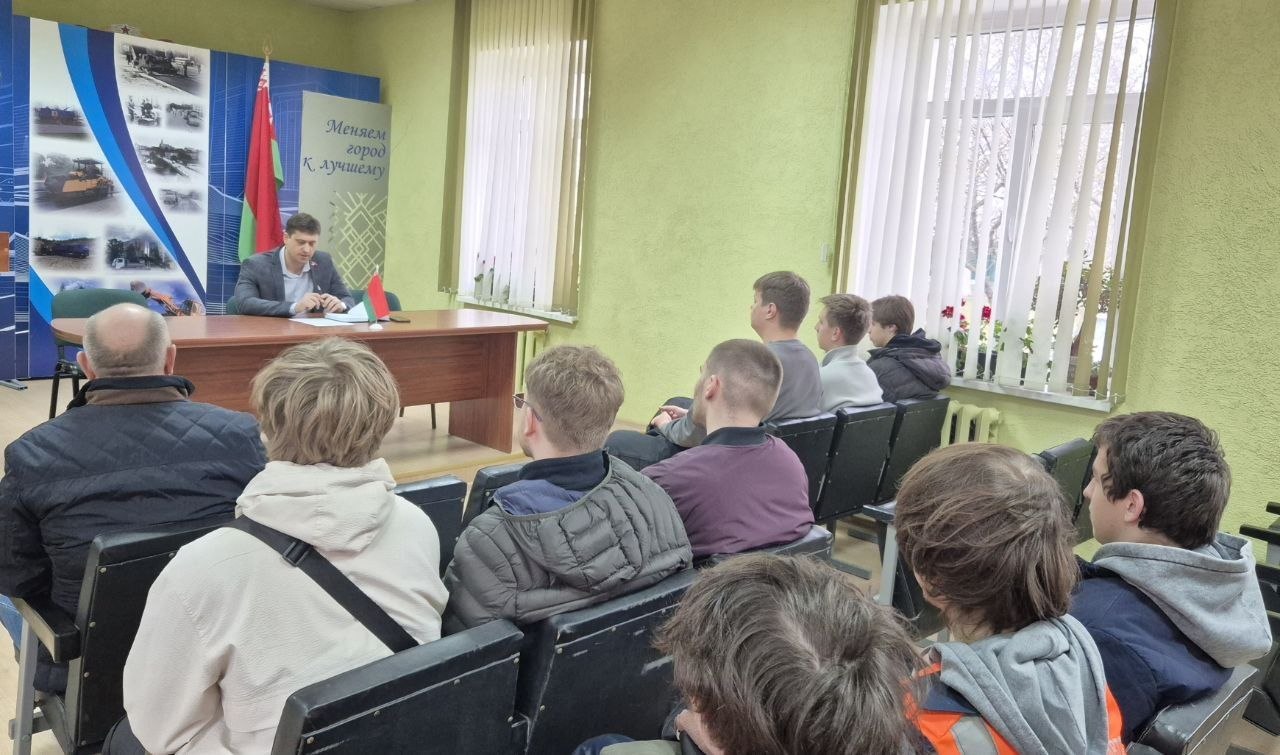 30 марта заместитель директора КУП "Ремстройавтодор" Лаптиёв Ю.В. и председатель профсоюзного комитета Захаревич О.С. провели встречу с участниками студотряда "Дорожники".